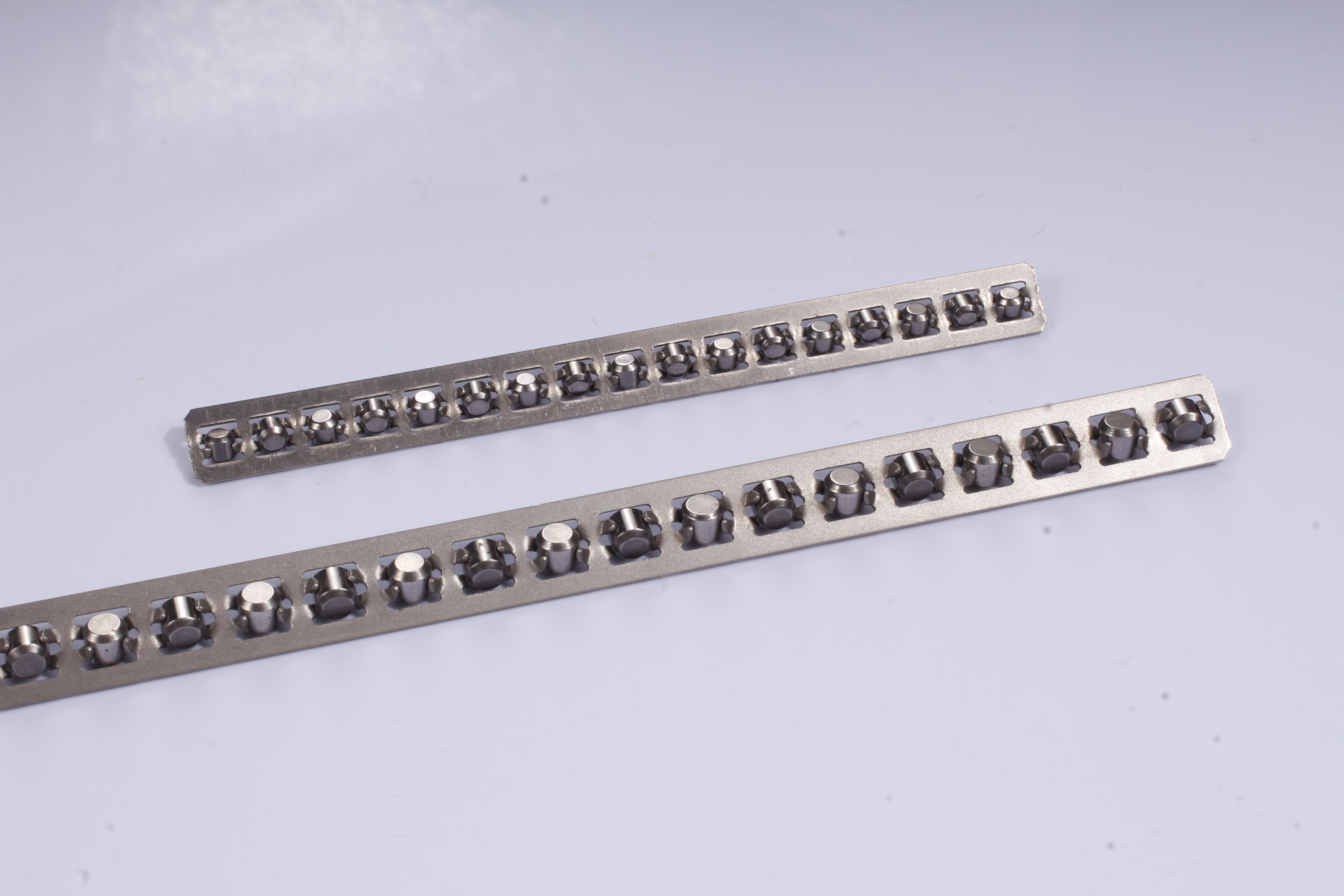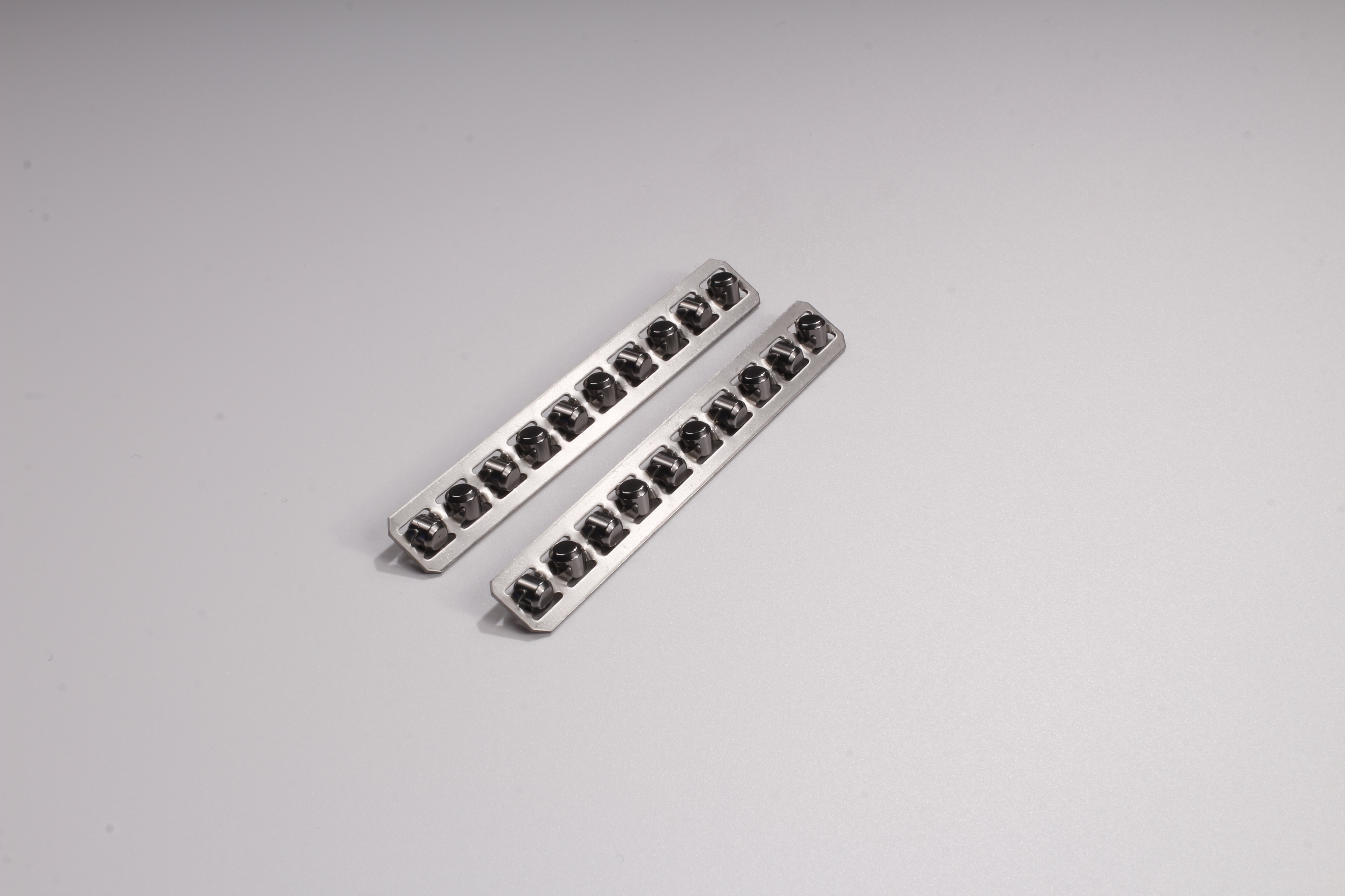 滾柱保持架是交叉滾柱直線導軌的重要組件之一,它雖不直接承擔主要載荷,卻對導軌的精度、平穩性、壽命和運行可靠性起到決定性作用。在交叉導軌中,滾柱呈90°交叉排列,可承受多方向負載與力矩,而保持架則負責將所有滾柱有序約束、均勻分布,確保整套導軌穩定、順滑、持久工作。